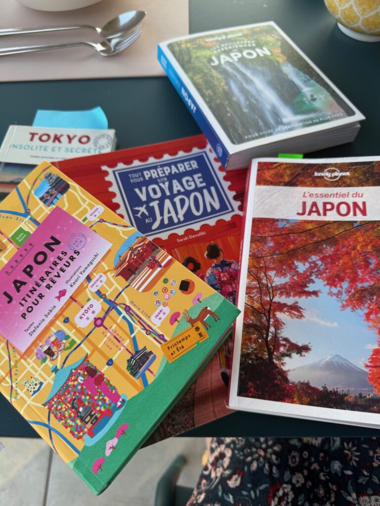 Et voilà, On a fini les réservations, les valises sont presque fermées et on profite de cette soirée pour discuter autour des guides. [Addendum] – En consolidant le blog (du blog spécifique sur notre voyage au Japon au blog général…