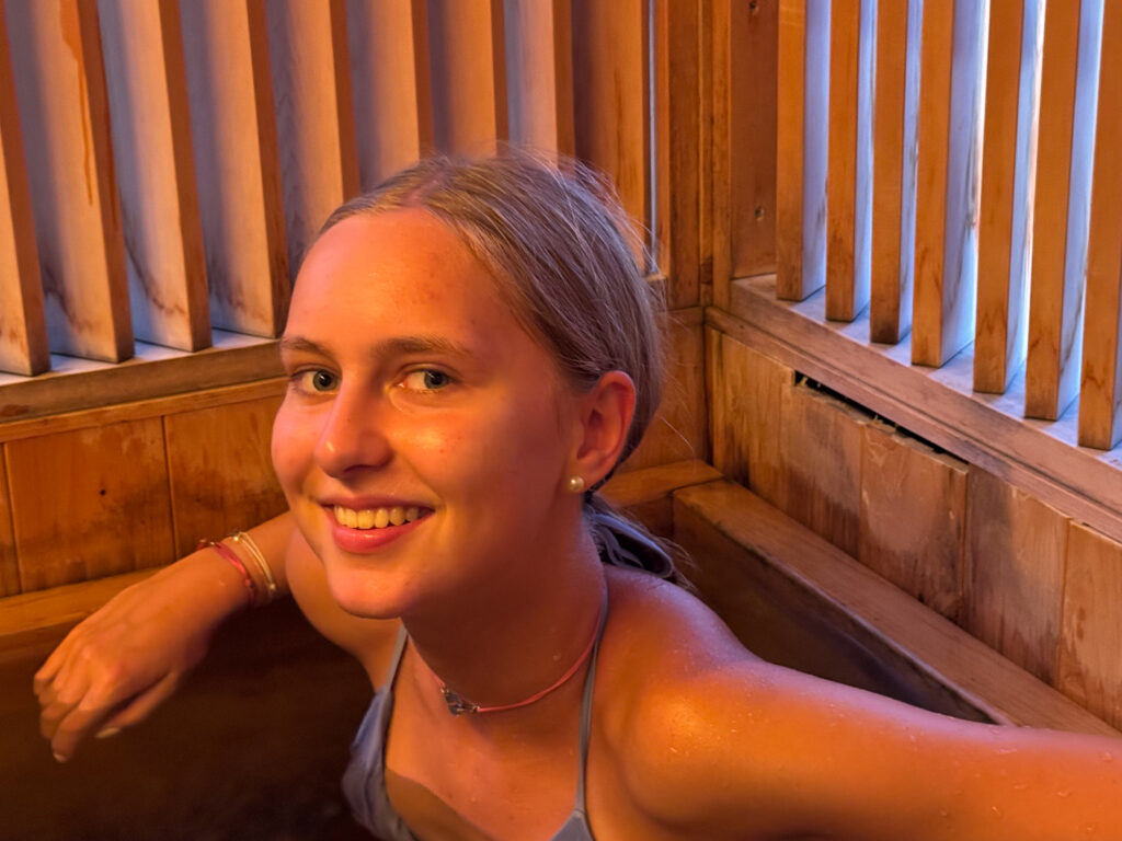 L’endroit où on s’arrête est génial, on a une chambre très spacieuse avec nos propres bains et il y a un book shop et un bar installés dans d’anciens bains qui sont juste hallucinants! Et c’est ouvert toute la nuit!!!!